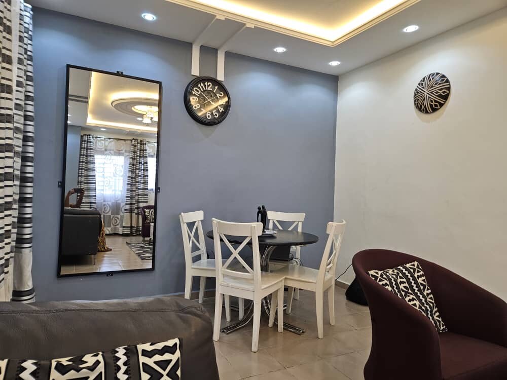 快適さと利便性を提供するモダンな2ベッドルーム、2バスルームのアパート。高速Wi-Fi、信頼性の高い発電機バックアップ、24時間年中無休のセキュリティ、お湯、専用駐車場を備えています。Chefferie Dschangの入り口にあり、Dschang大学、警察署、主要な交通エリアに近いです。ご家族連れやプロフェッショナルの方、長期滞在や短期滞在に最適です。