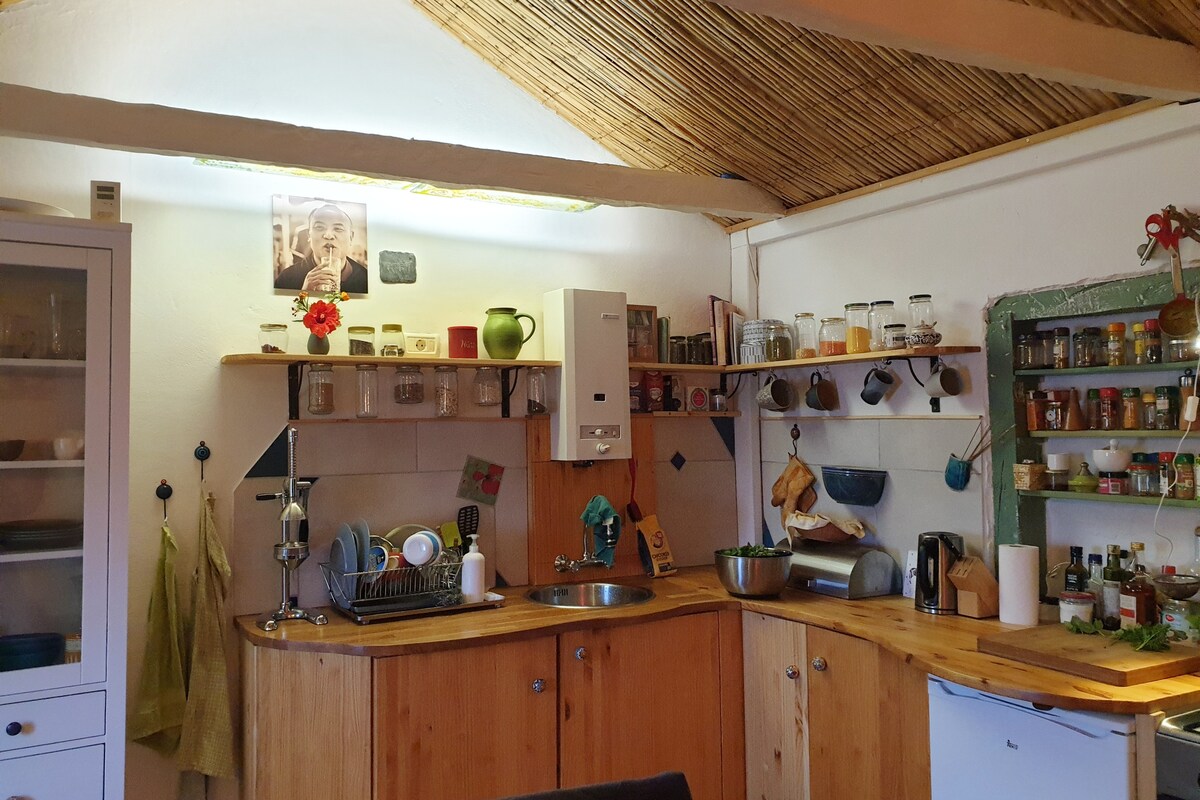 私たちは、島の緑豊かな北部にある元ジャガイモ農園で生活し、働いています。標高600mの高い谷にあり、夢のような、部分的にテラスのある場所で、丘と海を見渡すことができます。この家は一年中緑豊かな植生に囲まれており、木々、植物、低木、動物に囲まれています。
