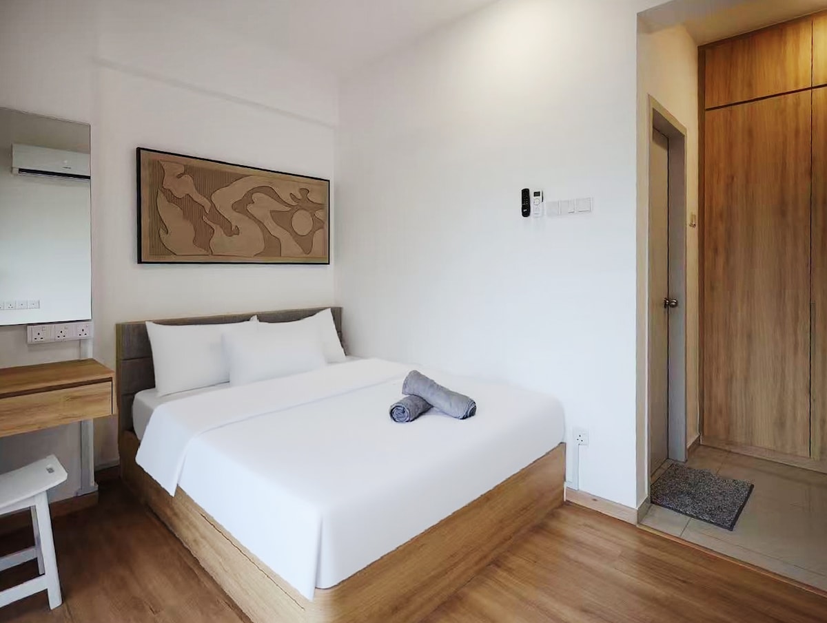 手頃で快適なミニマルなワンルームで、楽しい休暇や短期の出張に最適です。 周辺へのアクセス: - フードレストラン、マリーブラウン、ズスコーヒー、スピードマート、ペトロンなど - EDL高速道路とパシルグダンへのアクセスが簡単、IKEA、Aeon Terbau、Mid Valey SouthKeyなどまで約10 ~15分 アメニティ: Wi-Fi、アイスボックス、ヒーター、電子レンジ、コンロ、テレビ、ヘアドライヤー、アイロン、タオル、洗面用具など プール、ジム、サウナ、遊び場 その他 チェックイン時間:午後2時 チェックアウト時間:正午 敷地内に無料駐車スペース1台分をご用意しております。