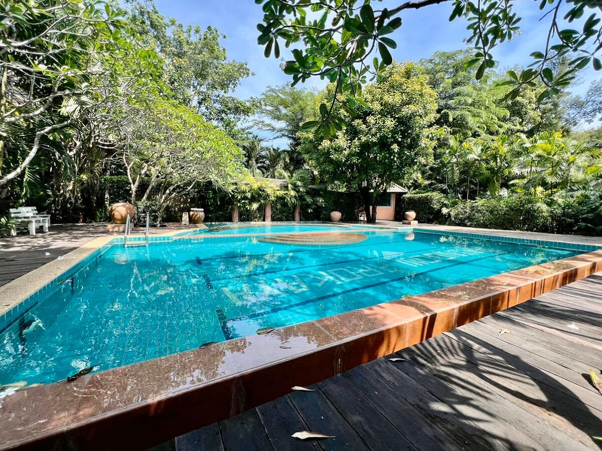 2000平方メートルのチーク材で建てられたとてもユニークな家です。この家の場所はバンパコン川のすぐ側にあり、景色が素晴らしく、Fox寺院の隣にあります。この小さな地区にはたくさんのアクティビティがあります。ガネシャ寺院、バンクラ水上市場、昼夜の川ツアー、釣りアクティビティ....これはタイ中部で見知らぬ体験のひとつです。本物のタイを感じることができます。