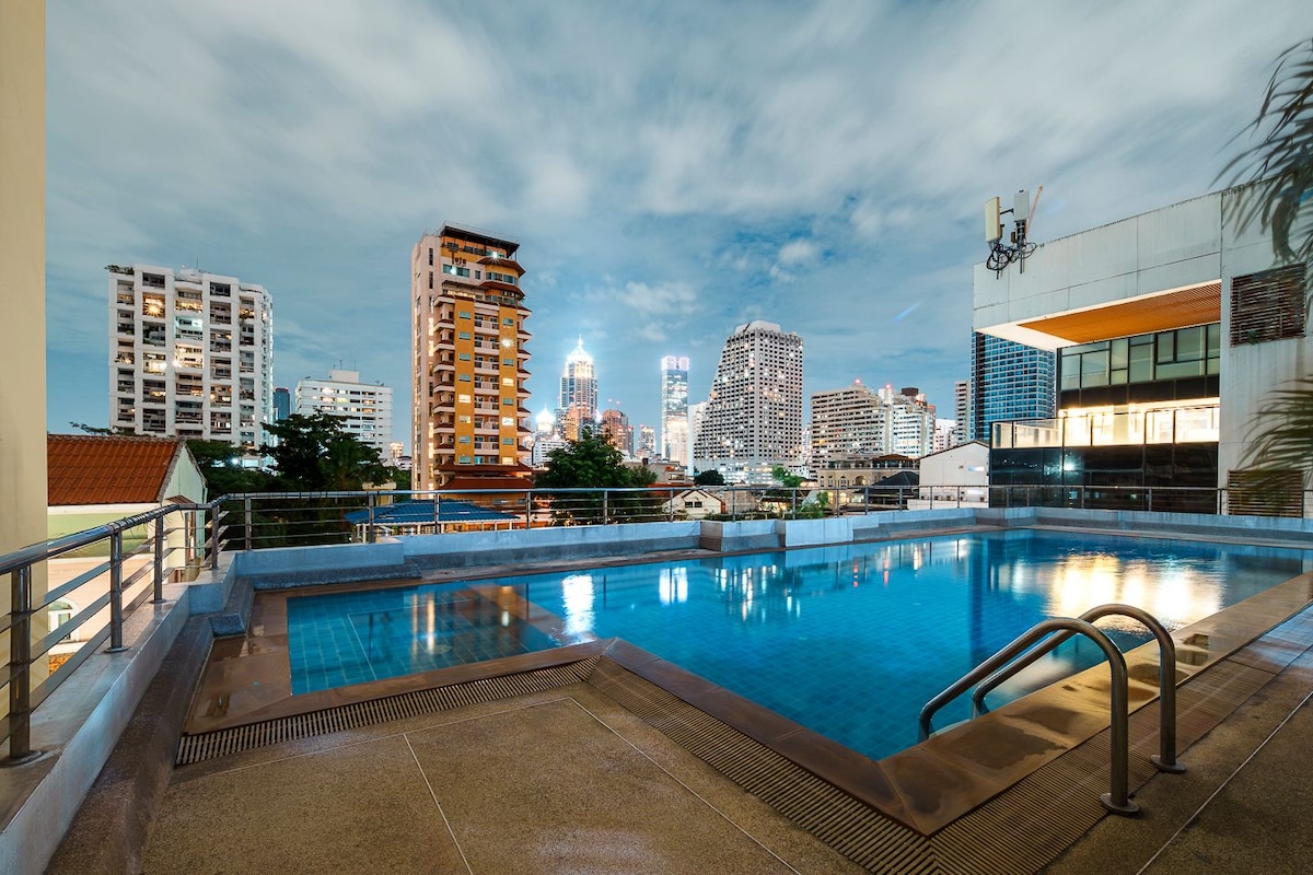 バンコクの個室フルファシリティ&Wi-Fi スカイトレイン 最高の眺め