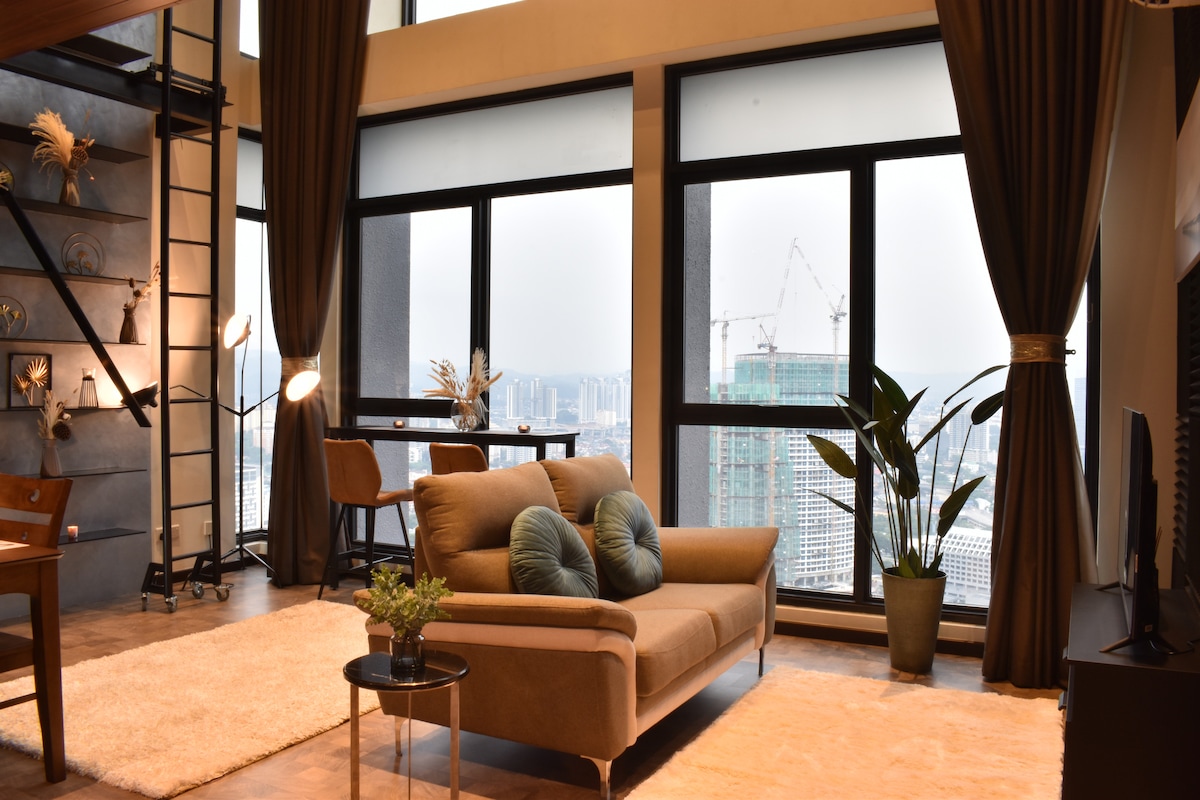 KLCCの眺望が楽しめるスタイリッシュなロフト3ベッド、バスタブ、屋上プール