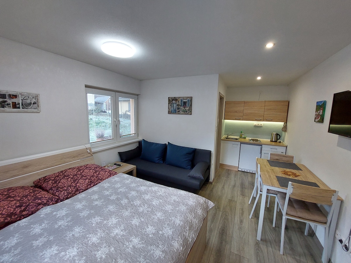 アパートメント1は、Vodný raj(ウォーター・パラダイス)から徒歩で行けるVyhneという村にあります。2〜4名様に適しています。バスルームと設備の整ったキッチンを備えた、本当に広々としたアパートです。アパートメントには、テレビと無料WiFiを備えたリビングルームがあります。屋外の座席もあります。宿泊施設には無料の駐車場があります。