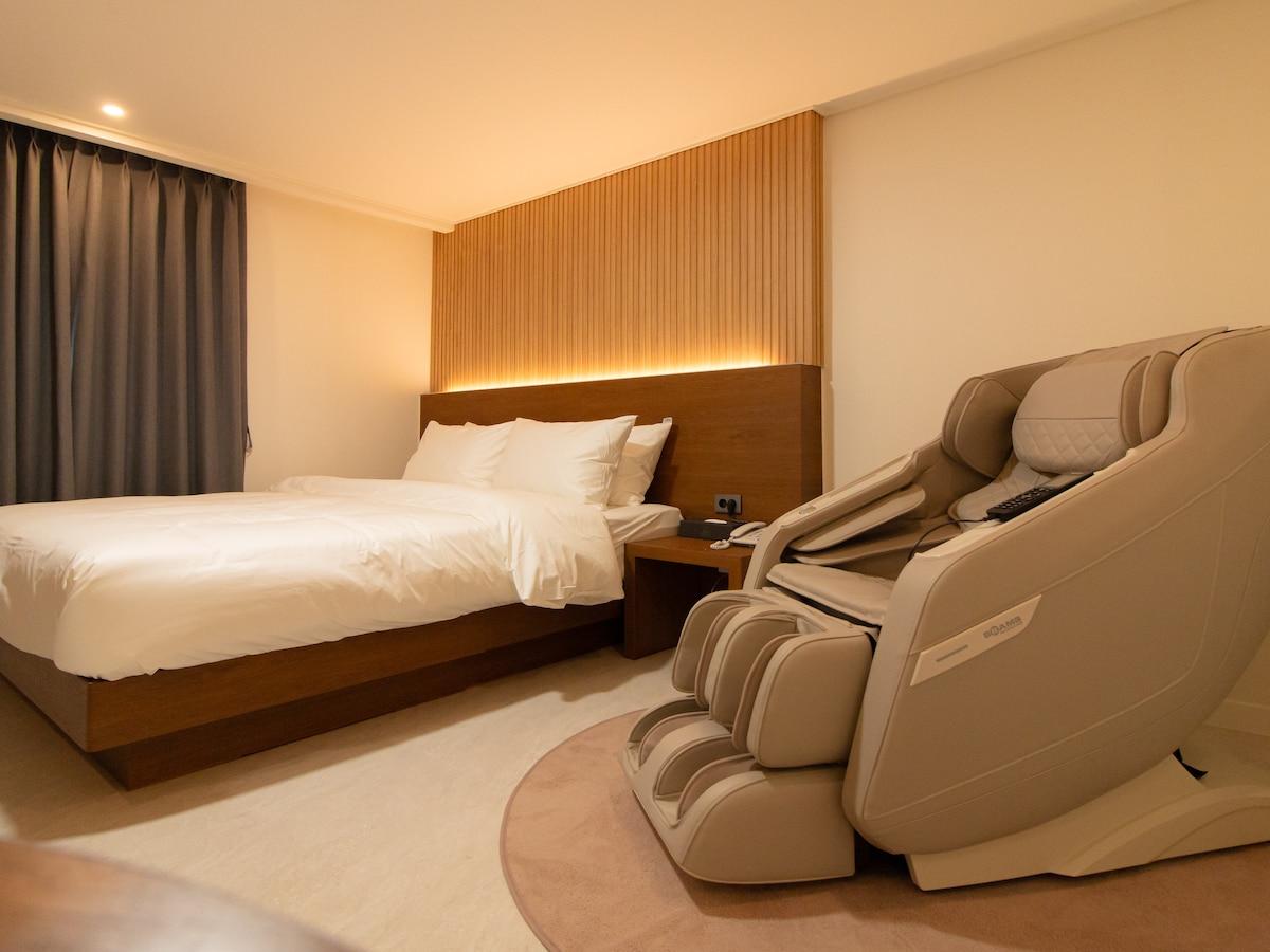 水原市仁啓洞/JKホテル/マッサージルーム/客室OTT/プレミアムホテル寝具/空気清浄機