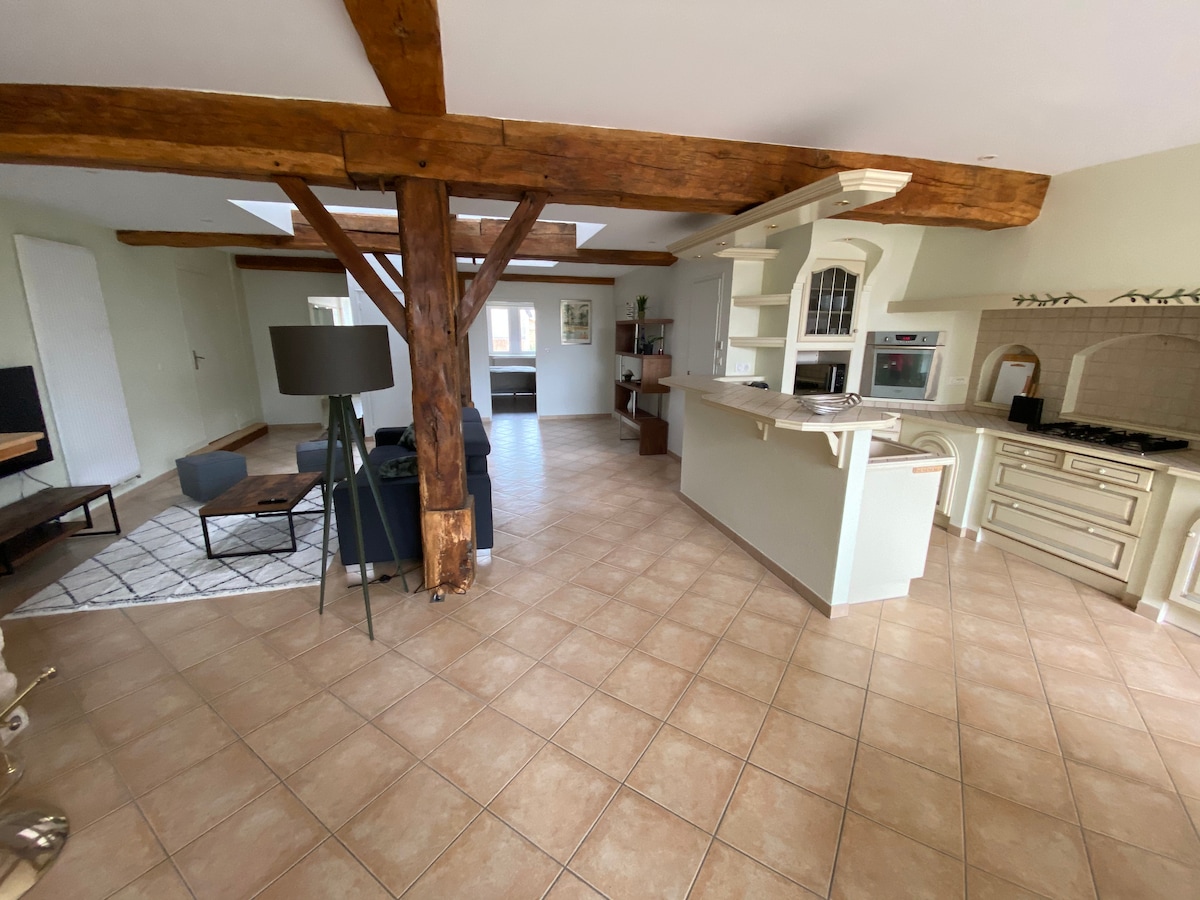 ✨エレガントなエスケープ – デル湖近くのプライベートテラス付きの広々とした120 m ²ロフト。 ワシーに滞在し、最大8人まで収容可能な広々としたモダンなロフトをご利用ください。 理想的なロケーションをご利用ください。 🚤 デール湖とそのウォータースポーツから20分、🎢 ニグロランドから45分、 🍇 シャンパーニュ地方と木組みの教会へのルートにあります。 📍パリからわずか2時間30分、ランスから1時間30分、トロワから1時間10分。 家族や友人との旅行や出張に最適な場所です。