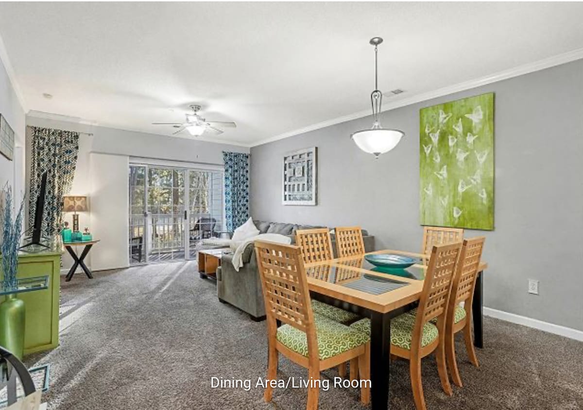Welcome to the BEACH!! Family friendly, 1st floor 2b/2B unit in beautiful Barefoot Resort. You will enjoy a spacious kitchen/living area, laundry, screened in porch w/amazing waterview, and so much more! (Free shuttle service to the beach) No stairs/private entrance to your unit. Building is right beside the community pool! Free wifi/cable tv. So much to love in this space! -4 Championship golf courses -Near Barefoot Landing -Miles of walking/biking trails -Steps away from pool
