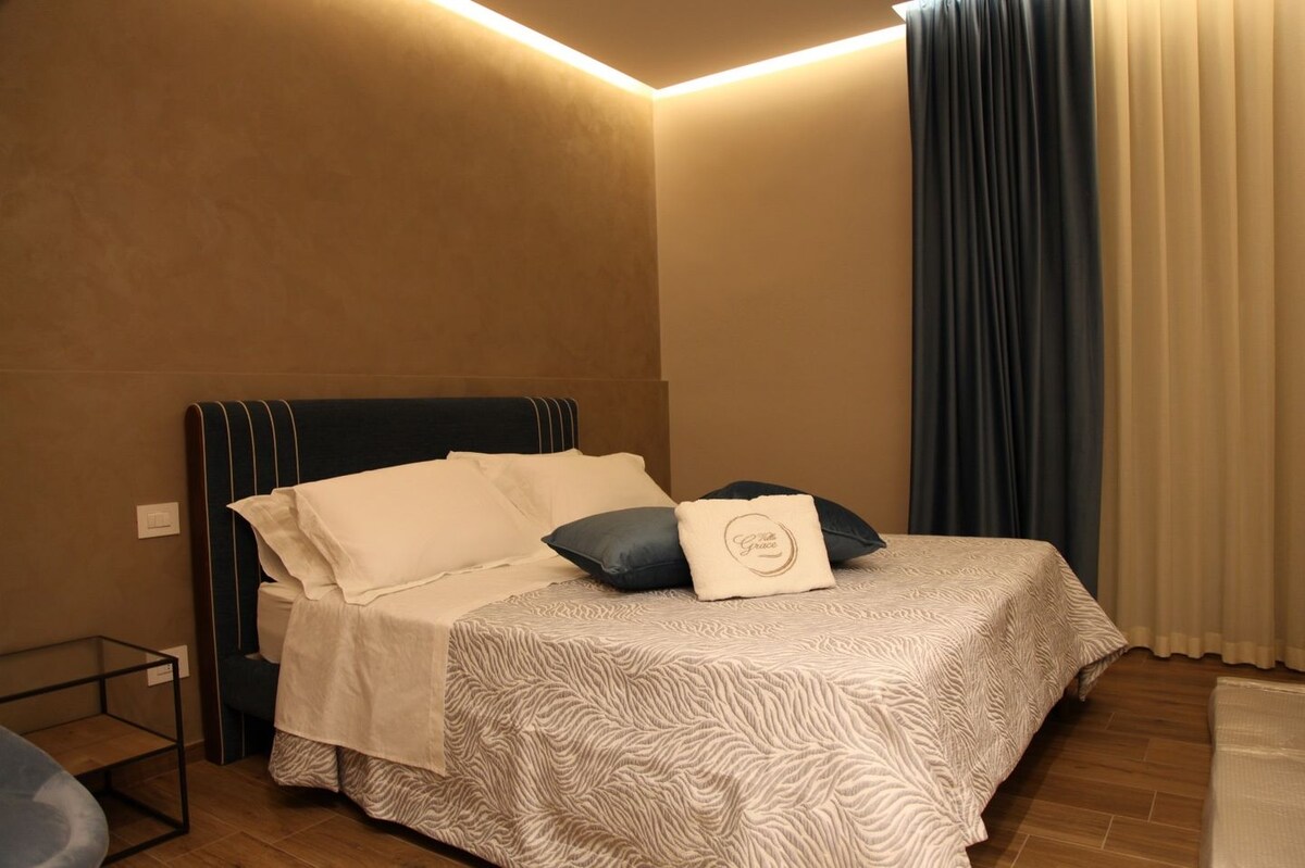 この空間のスタイルが、リビングルームのトレンディな背景となります。 エレガントで、ミニマル、細部にまでこだわっています。 フォルナセッティの壁紙とクールなアクセサリー。 美しいプーリアを訪れるために移動する必要があるダイナミックなカップルにとって、快適で完璧な宿泊施設です。 あらゆるコンフォートが揃っており、アクセスも簡単です。