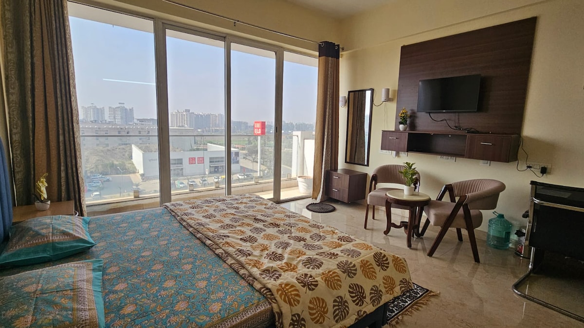 Welcome to your home away from home ! Whether you're visiting for work or leisure, this bright and stylish space is perfect for couples or solo travellers, families. 🛌 What You'll Get: 1 bedroom with comfortable bed & living area • 1 bathroom with hot water & basic toiletries • Fully equipped kitchen for home-cooked meals •High-speed Wifi 📶, Smart TV🖥,Refrigerator Other Highlights: •Parking 🚗 /24x7 Security 🎥/ Self- check-in 🛅 / Elevator 🛗/ Pet-🐶 friendly •24x7 power💡Backup