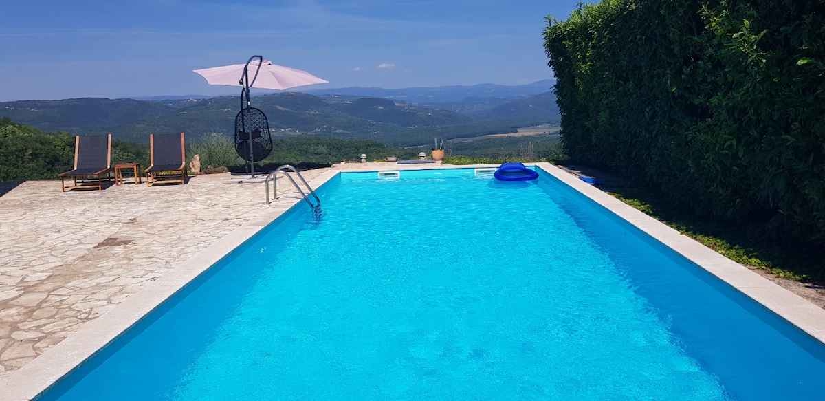 私たちは夢を実現し、多くの愛と私たちのアイデアに従って別荘を作りました。イストリア地方の典型的なスタイルの新しい家で、海までの風景を一望できます。これには、専用の大きな温水インフィニティプールと、グリル付きの広々とした屋外キッチンも含まれています。 注:プールは4月から10月まで温水でご利用いただけます。暖房は1日最大10時間で20ユーロの追加料金がかかります。
