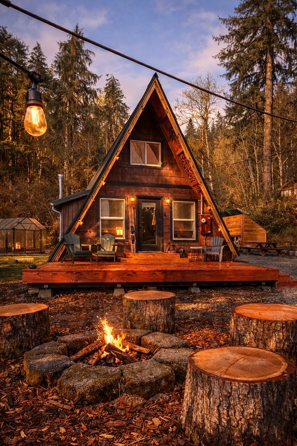 PNWのキャビン、小川の近くにある三角屋根の家、露天風呂・ジャグジー、Wi-Fi