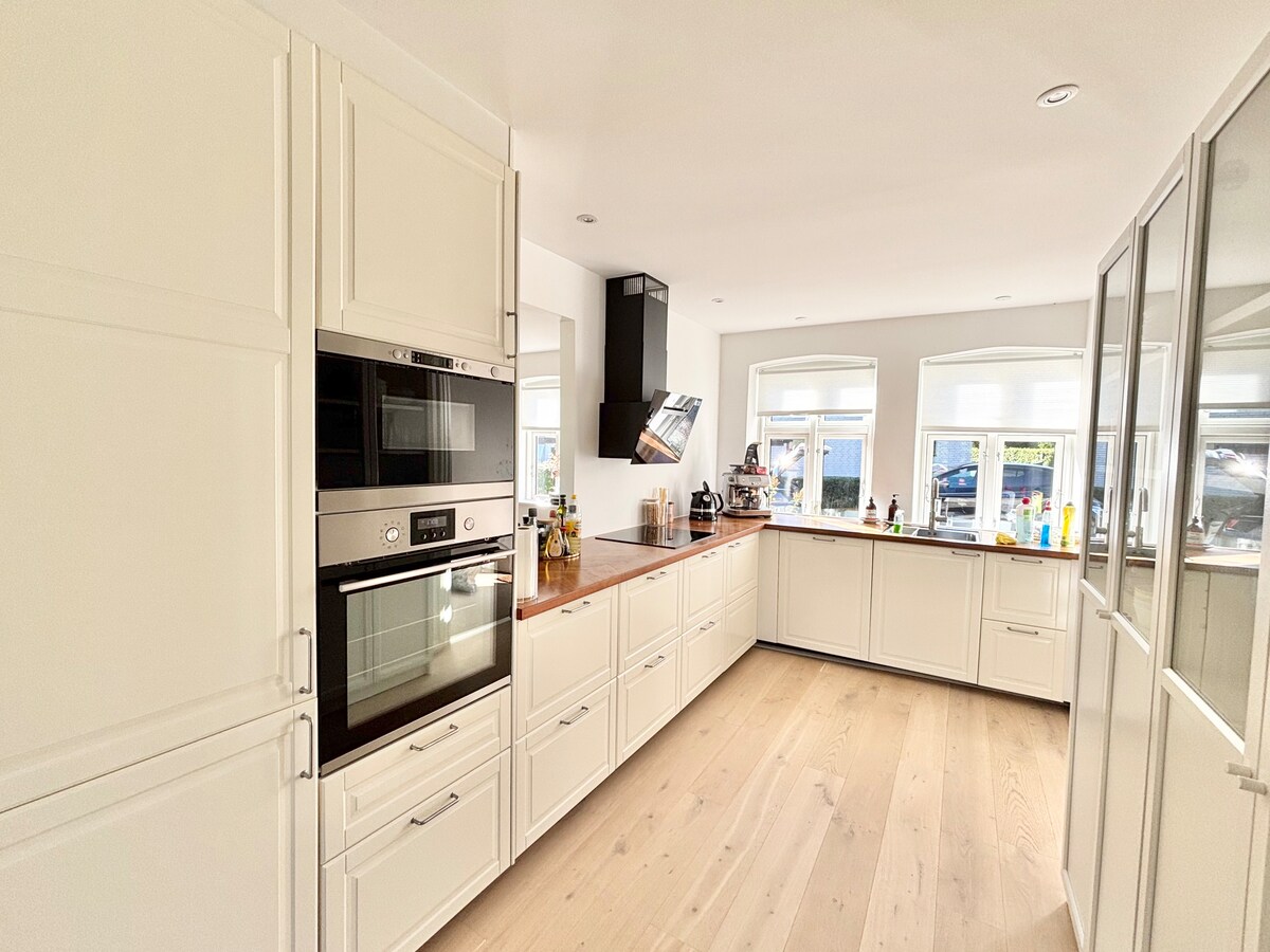 グラムスビョルグ(Glamsbjerg)近郊のニュルプ(Nyrup)にある、自然豊かな環境の中にある新築の独立した木造家屋。 天井までの高さは5メートル、大きなガラス製の折りたたみドアがあり、野原の美しい景色を眺めることができます。壁に埋め込まれたベッドと快適なロフト。 設備の整ったキッチン、洗濯機と乾燥機を備えたバスルーム、Sonosシステム、Wi-Fi、そして快適な室内環境。 森の近くで、西フィン島での多くの体験 - 平穏と没頭に最適です。森の中の素晴らしい散歩道とサイクリングルートがすぐそばにあります。 4人用の寝室、そのうち2人はロフト。 専用駐車場。