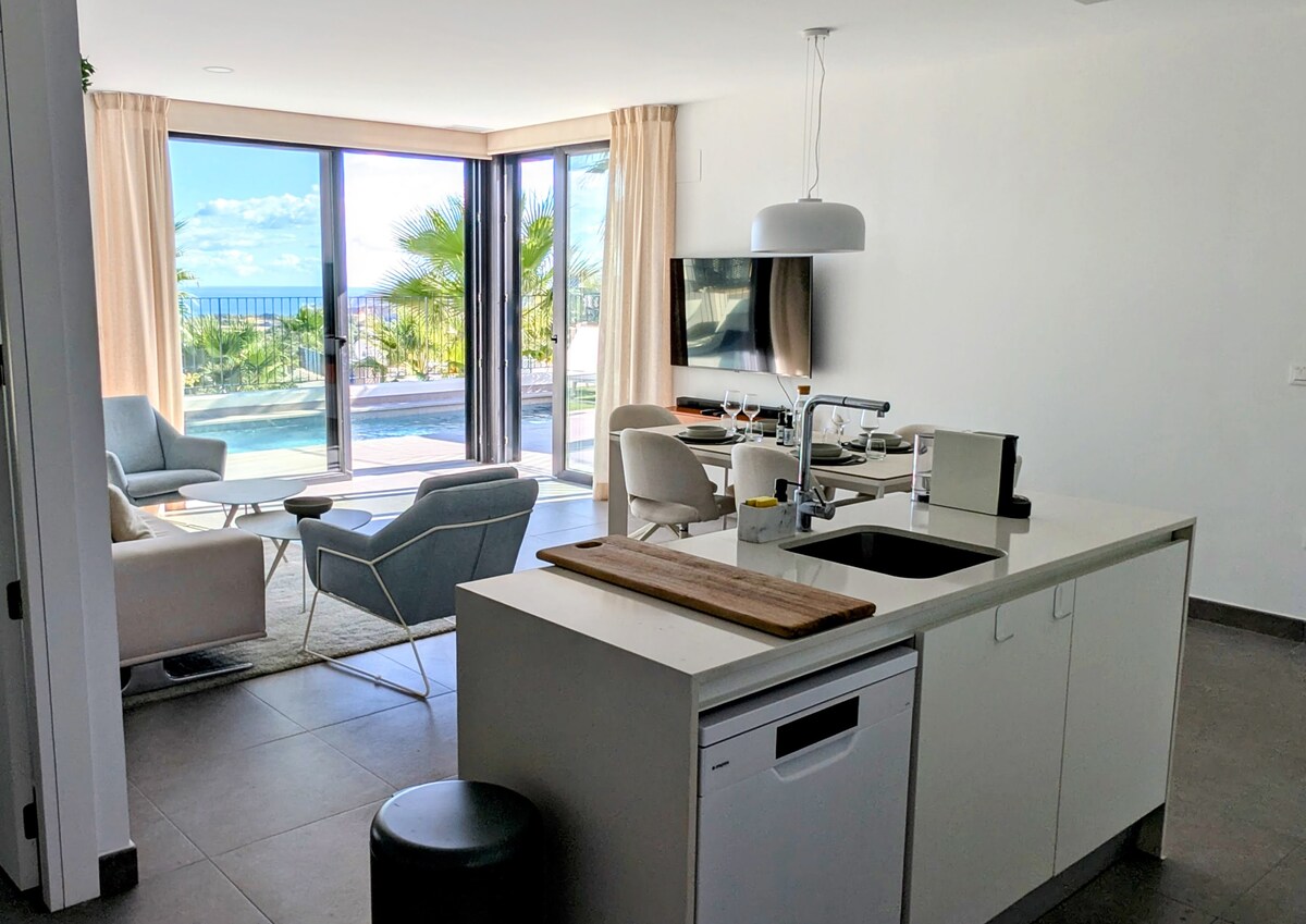 プーリョップ・ヒルズにあるモダンなヴィラ。専用プール、寝室3室(1室はスイート)、バスルーム2室、設備の整ったキッチン、エアコン、高速ファイバーWi-Fi、仕事スペース付き。海と山の景色を望む広いサンルームで太陽を浴びましょう。屋外ダイニング、チルアウトエリア、ラウンジチェアを備えたテラス。アルテア、ベニドルム、ビリャホヨサのビーチや自然のルートから数分です。家族連れやロマンチックな休暇に最適です。コスタブランカでリラックスしましょう!