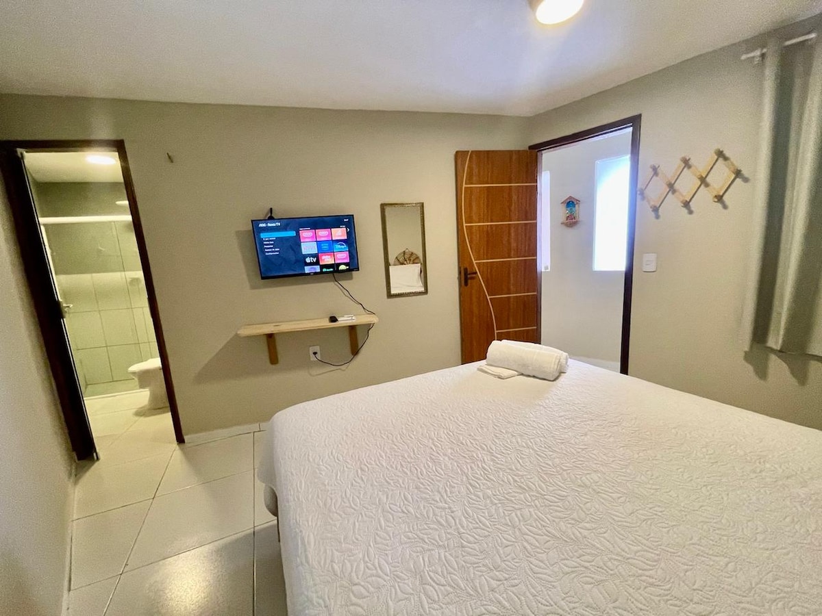 Acomodações: 4 quartos no total, 2 suítes com banheiro privativo, 2 quartos adicionais, todos os quartos com ar-condicionado, um banheiro social 🍳 Cozinha e utensílios Fogão com bujão, geladeira, galão de água, filtro de água, panelas, pratos, copos, talheres e utensílios básicos 🧺 Itens disponíveis na casa Toalhas de banho, papel higiênico, Itens básicos de higiene detergente e etc. 🌐 Outras informações Wi-Fi disponível, suporte local: telefone de contato com o responsável pela casaac