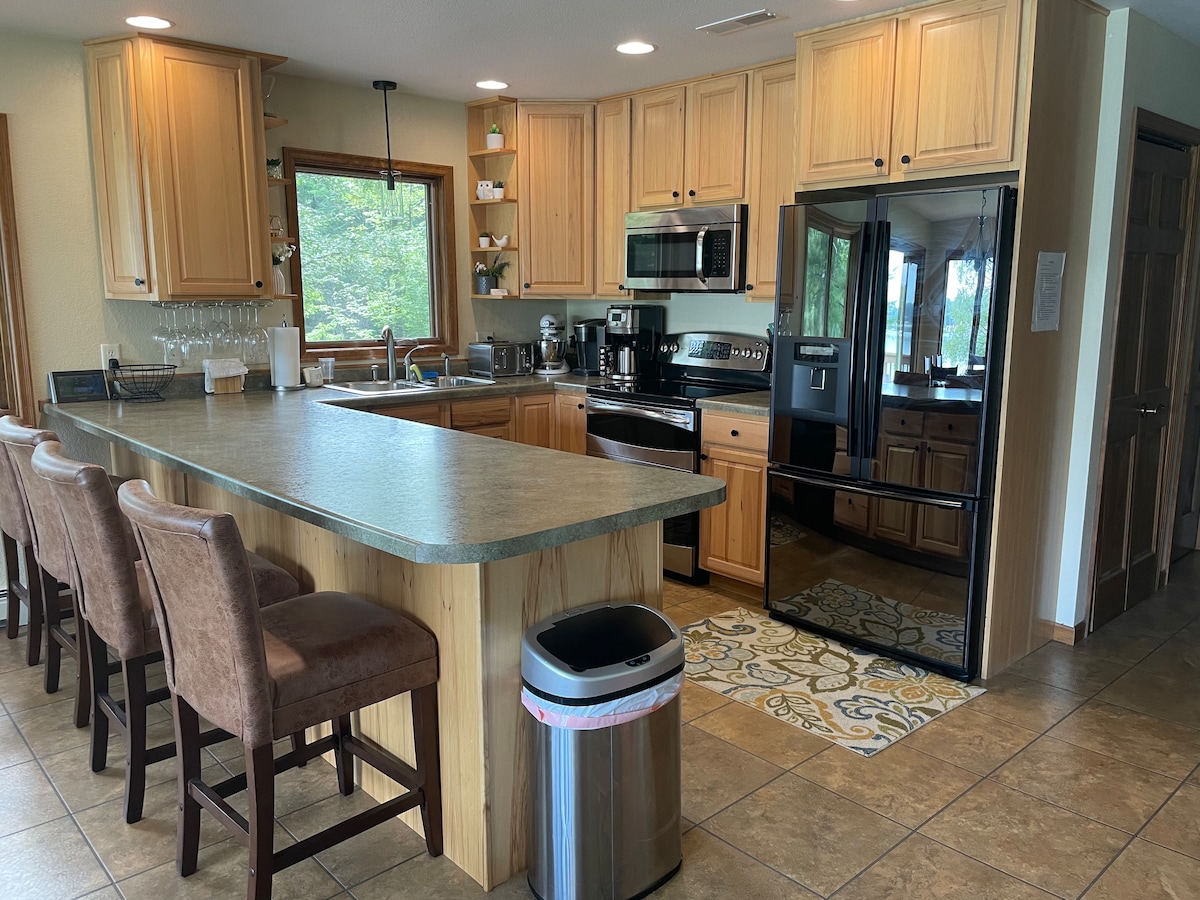 ツインシティから90分、最高のレクリエーション/釣りのできる湖からすぐの美しいログキャビン。湖とファイヤーピットを見下ろすデッキをお楽しみください。 夜はデッキでディナーを楽しみ、キャンプファイヤーを囲んでお話をしたり、スモアを味わったり、ガガガの鳴き声を聞いたりしましょう。 10月1日からメモリアルウィークエンドの前週まで、湖からドックが外れています。 ATVとスノーモービルのトレイルからわずか数分です。 ポンツーンレンタルはご利用いただけません。