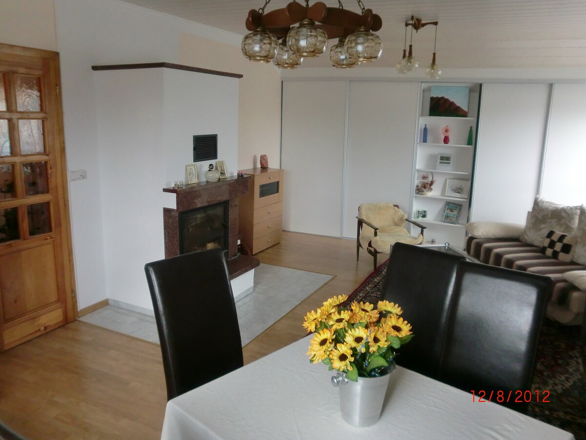 改装されたアパートメントは、モダンな快適さと愛情を込めてデザインされたディテールを組み合わせ、すぐに温かく魅力的な雰囲気を作り出します。ハイライトは、大きなソファと雰囲気のある照明を備えた居心地の良いホームシアターです。リラックスした夜に最適です。2つの静かなベッドルーム、設備の整ったキッチン、高速Wi-Fi、そして暖炉のある庭園は、カップル、家族、友人、リモートワークに最適な宿泊施設です。