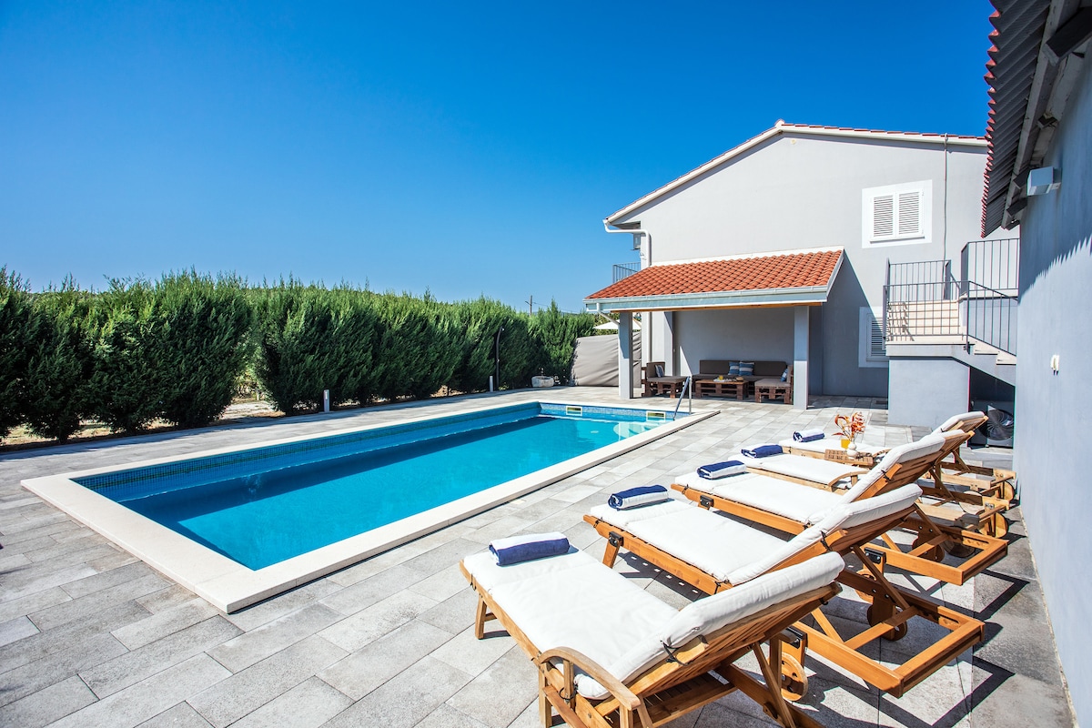 ヴィラをまるごと貸し切りでご利用いただけます! 緑豊かで静かなドゥゴポリエにあるロマンチックなヴィラ 温水プールで泳ぎ、ジャグジーでリラックス 太陽の下で横になり、噴水の音に耳を傾けましょう アーチの下でバーベキュー トランポリン、テーブルサッカー、ダーツ、自転車5台をすべてご利用いただけます! 素晴らしいことに、すべてが近くにあります: A1高速道路出口-3 km ŽNJANという名前のビーチ-15km スプリト市-16 km ブラチ島、フヴァル島、ヴィス島を訪れるためのスプリトフェリー港-19 km 古代サロナ-9 km クリス要塞(ゲーム・オブ・スローンズ)- 6 km すべてが近くにありながら、十分に静かでプライバシーが確保できます。 休暇をお楽しみください