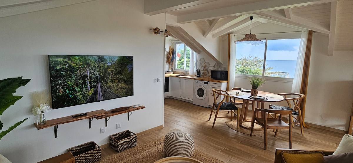 🌴 La Kaz Horizon en famille, entre amis ou en amoureux!! Offrez-vous une parenthèse inoubliable dans cet appartement spacieux et lumineux, avec une vue spectaculaire sur la mer et les montagnes. Vivez un dépaysement total dans un havre de paix où confort et bien-être se rencontrent. Ici, chaque instant respire la sérénité… et vous vous sentez déjà chez vous. Cascade magique d’Acomat, tranquillité assurée de l’anse Caraïbes et randonnées contées dans la nature sauvage de Thomy.