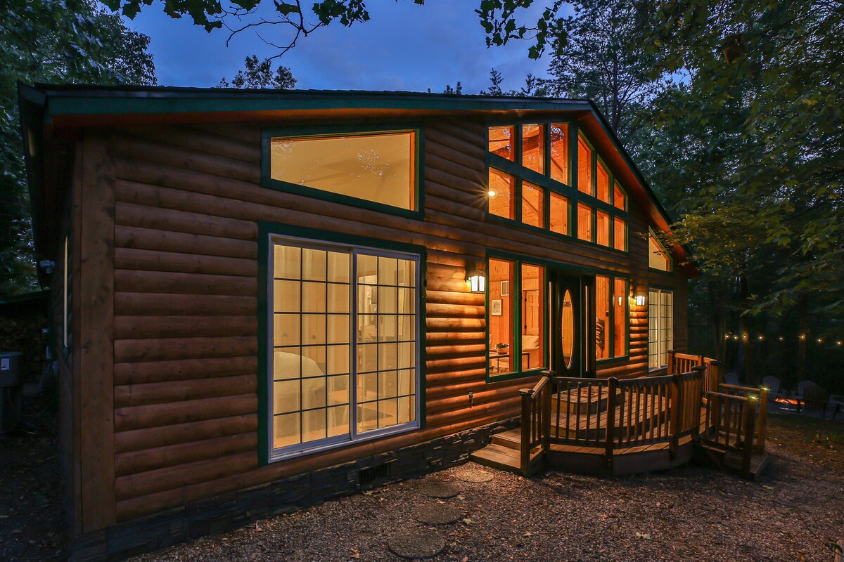 Welcome to Bear Lodge! Whether you're coming for a multi-family trip or a friends weekend, escape the hustle and bustle and relax in a spacious single-story 5 bedroom, 4 bathroom log home with lofted ceilings, large picture windows with lots of natural light, 10-person dining table, several indoor and outdoor gathering spaces, an outdoor deck, and separate firepit on a quiet, highly wooded cul-de-sac near Bryce Resort in Basye, Virginia.