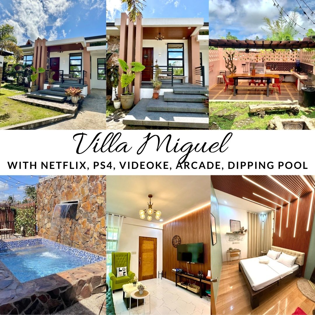 ヴィラミゲルでくつろぎましょう 🏡✨ タガイタイからわずか5分のモダンなスカンジナビア風バンガロー! エアコン付きの寝室✔️3部屋(最大10名様) ✔️ プライベートプール(2m x 3m) ✔️ 屋外キッチン&焚き火 ✔️ 平穏な雰囲気+涼しい風 🎮 PS4 +クラシックアーケードゲーム機 🎤 ビデオゲーム+ボードゲーム(全年齢対象) 静かな旅はここから始まります。 🌿