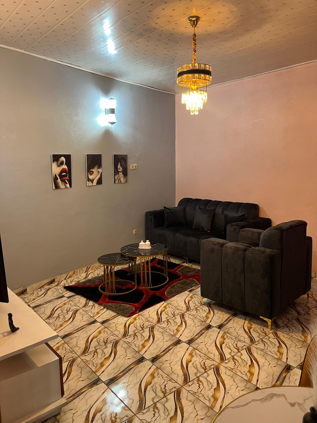 快適さと利便性を提供するモダンな2ベッドルーム、2バスルームのアパート。高速Wi-Fi、信頼性の高い発電機バックアップ、24時間年中無休のセキュリティ、お湯、専用駐車場を備えています。Chefferie Dschangの入り口にあり、Dschang大学、警察署、主要な交通エリアに近いです。ご家族連れやプロフェッショナルの方、長期滞在や短期滞在に最適です。