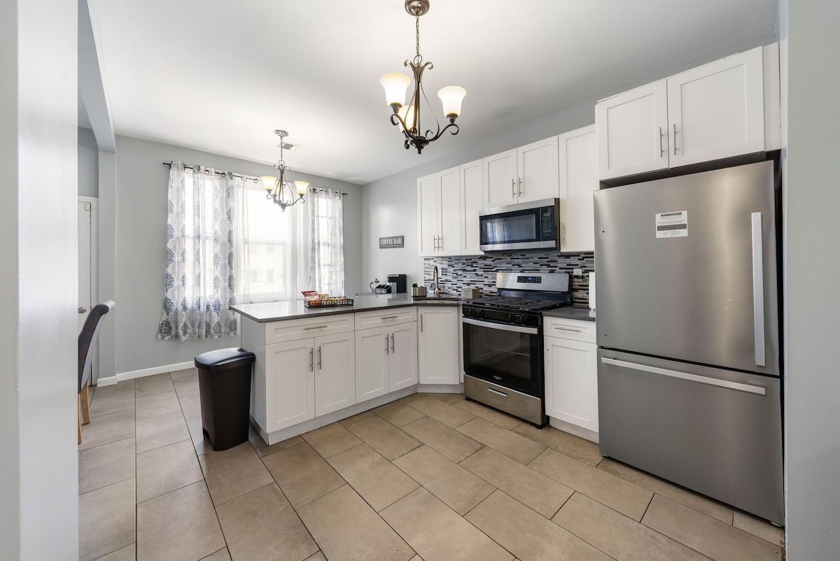 ニューヨーク市とニュージャージーを訪れる家族連れやグループに最適な、広々とした設備の整ったアパートです。ベイヨンにあり、34丁目のライトレール駅まで徒歩わずか6分で、市内へのアクセスが簡単です。快適な寝室3室、改装されたバスルーム2室、設備の整ったキッチン、各部屋にエアコン、高速Verizon Fios、50インチスマートテレビを備えています。事前のご予約で、路上駐車場と専用駐車場をご利用いただけます。快適で実用的、そしてよく管理された滞在のために設計されています。