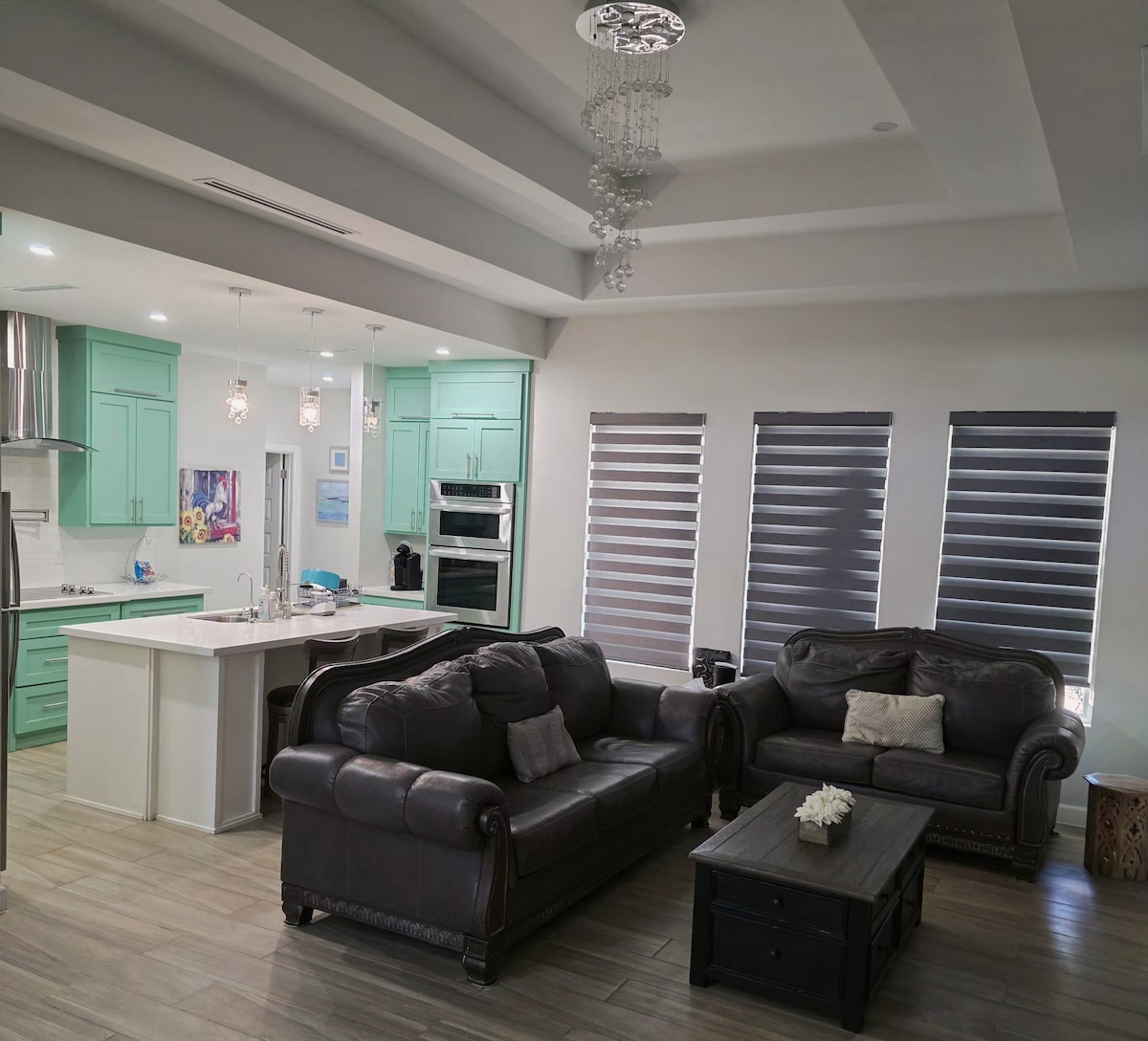 This listing is for one private 1-bedroom side of a duplex-style townhome in a quiet golf community near South Padre Island; it is not the entire building. You’ll have a private entrance, full kitchen, living room, bathroom, private courtyard, and parking on the left side of the driveway. There are no shared interior spaces. The owner lives in the separate right-side unit. The only shared area is the screened lakeside patio in back. The second bed is a pull out couch in the living room.