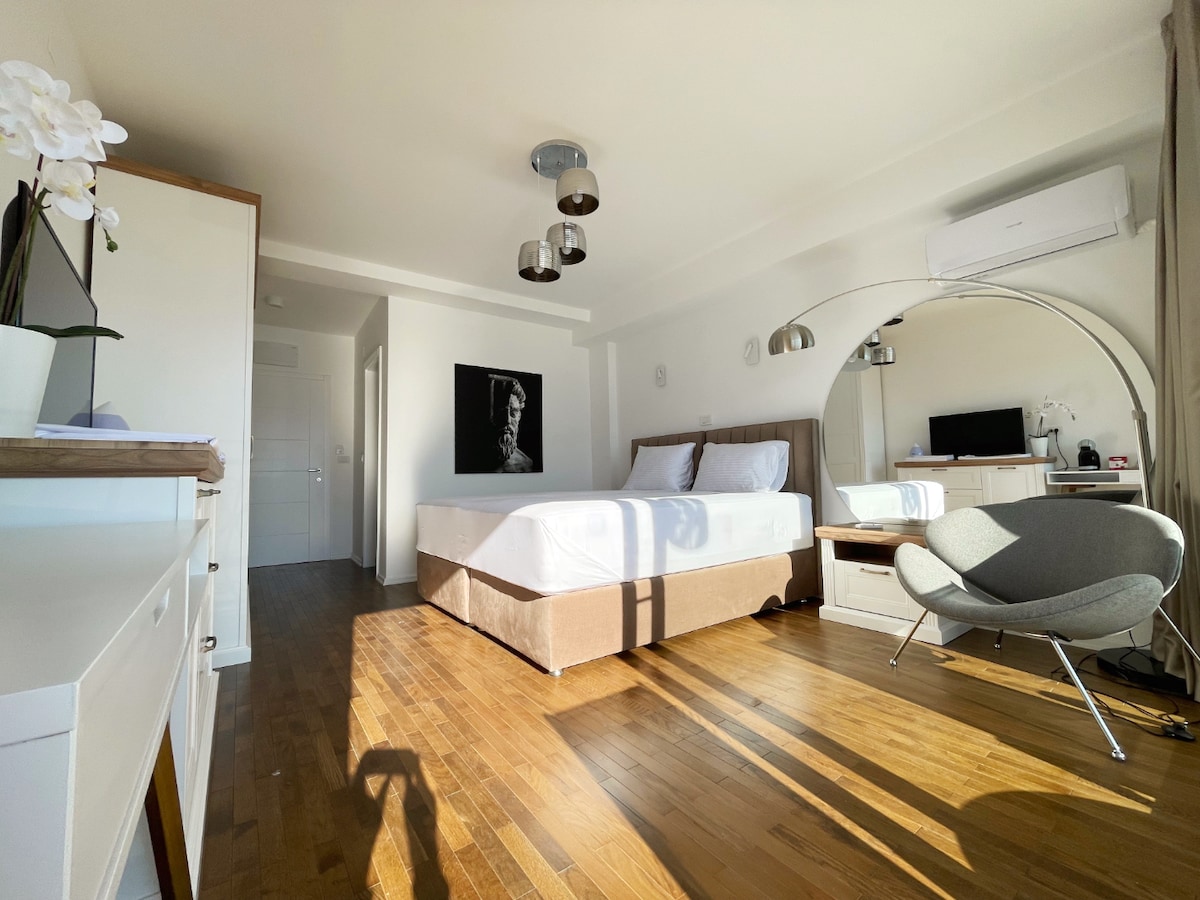 Enjoy a stylish & authentic experience at this centrally-located studio apartment with lake view and patio garden at the heart of the vivid Old Town of Ohrid. A true hidden gem, located in a charming cobbled alley in a brand new 2022 boutique villa. Quick access to city's major attractions.