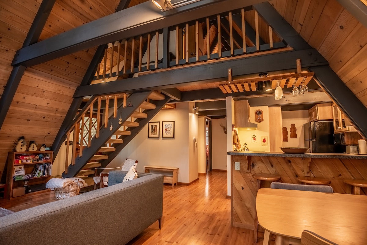 山にあるサンフランシスコ風ロフトに見えるユニークなファームハウスへようこそ!美しく手入れされた2エーカー以上の広々としたプライベートな敷地内には、くつろぐための静かな空間がきっと見つかります。デッキから雪が降るのを眺めたり、アディロンダックチェアから木々の景色を眺めたり、カスタムアルコーブで本を読んだり、このユニークな宿泊先にはリラックスできるスポットがたくさんあります。 *ご予約により、ゲストはハウスポリシーとキャンセルポリシーを理解したものとみなされます*