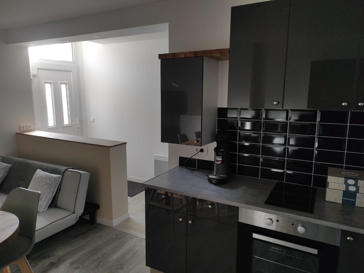 市内中心部に位置する美しいアパートF2、駅から徒歩5分。 駐車場、Wi-Fi:無料 設備の整ったリビング 設備の整った部屋 調理器具付きキッチン:食器洗い機、洗濯機、オーブン、コンロ、換気扇、電子レンジ、 冷蔵庫、TASSIMOコーヒーメーカー、トースターなど)、バスタブ付きのバスルーム、独立したトイレ。 2名様の場合、ソファベッドが必要かどうかお知らせください 楽しい滞在をお楽しみに