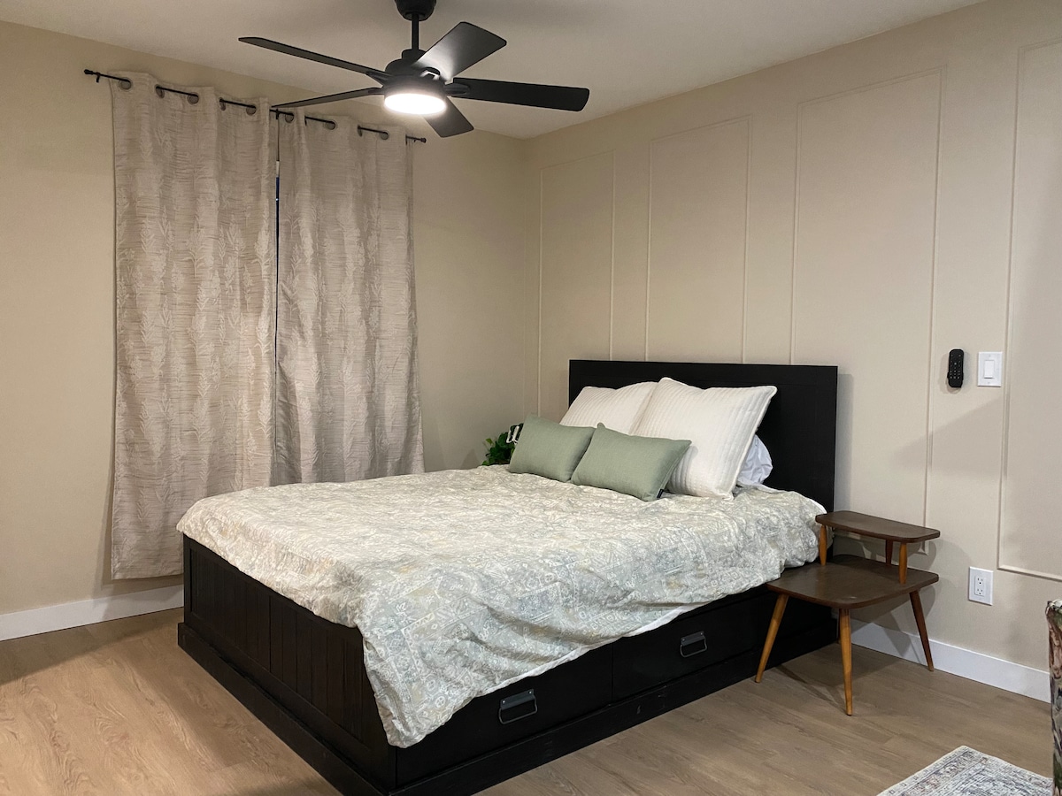 こちらの落ち着いた宿泊先で、ご家族一緒におくつろぎください。 または、長い1日の仕事の後に一人で慰めを見つけに来てください。 大きなクローゼット付きのダブルベッド、天井ファン、大きなバスルーム(共用の場合あり)、ジャグジーへのアクセスがあり、とても快適な滞在になります。 屋外で楽しめる10エーカーの広さがあり、小さな専用湖でカヌーを使用したり、冬には湖に作ったアイススケートリンクでスケートを楽しむことができます。 追加料金で、キッズベッド3台付きの別の寝室をご利用いただけます。