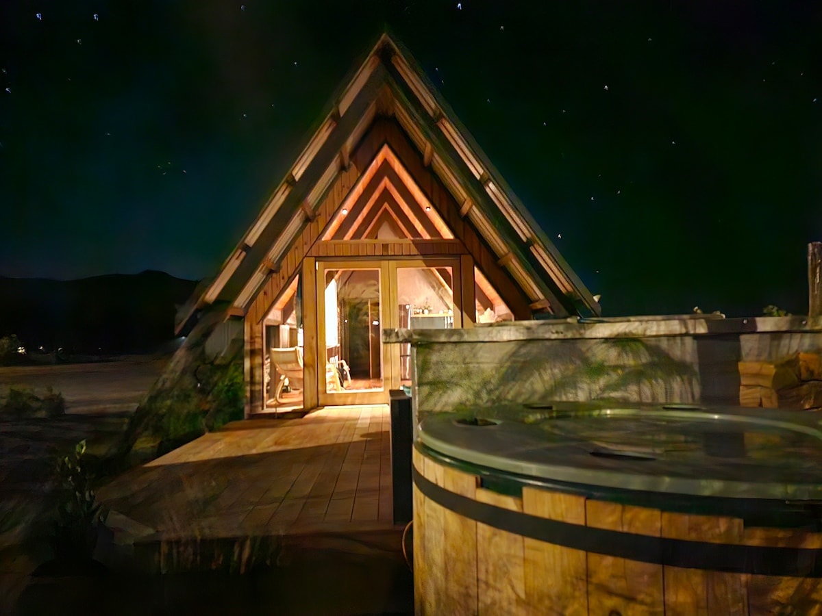 ハウェア山脈に囲まれた趣のある三角屋根の家。周囲の山々のパノラマの景色を望むことができる、原生植物の後ろに隠れています。このプライベートな隠れ家は、リラックスした休暇を過ごすのに最適なロケーションです。星空を眺めながら、薪を燃やした温かい浴槽で飲み物を楽しみましょう。このユニークな家には、寝室1部屋、バスルーム1部屋、フルサイズのキッチンがあり、屋内外で食事を楽しめます。