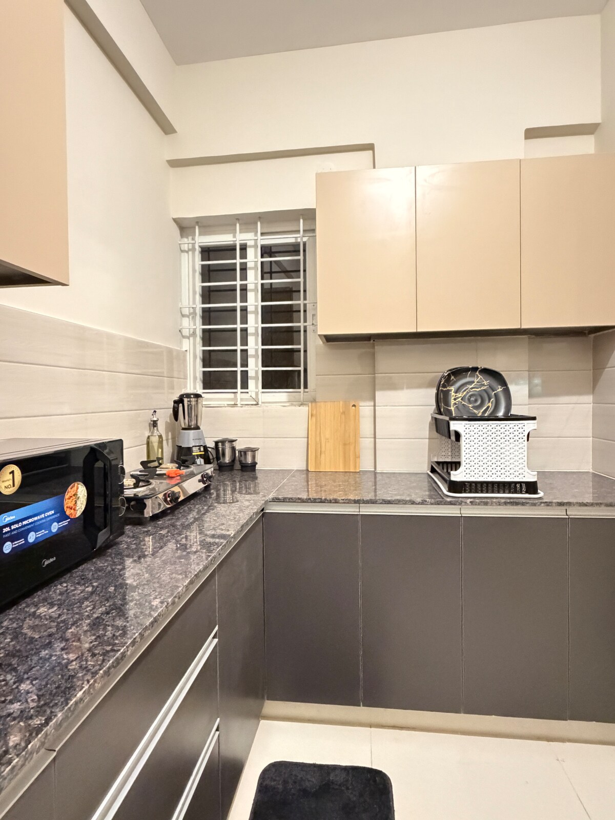 Auraは、Akshayanagar Circleにある閑静で安全な建物内にある、真新しくモダンな1ベッドルーム・1バスルームのお部屋です。この宿泊施設には、43インチのGoogle TVを備えた居心地の良いリビングルーム、設備の整ったキッチン、インバーター式無停電電源装置、洗濯機、クイーンベッド1台を備えた静かな寝室があります。2人、ご家族、一人旅のゲスト、カップル向けに設計されたAuraには、快適さと便利さを実現するために必要なものがすべて揃っています。スーパーマーケット、カフェ、交通機関、フードストリート、日用品店がわずか数歩の距離にあります。
