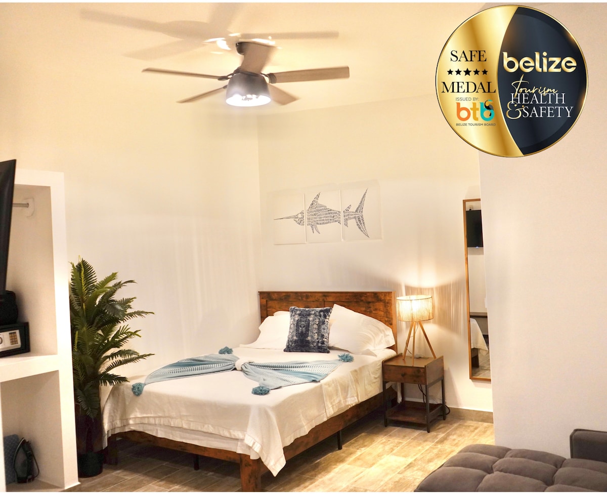 Your tropical island adventure Awaits in this dreamy paradise Relax in a Luxurious King Bed Fully Equipped Coffee bar & drink station Complementary Peddle bikes From the village to the property is a short 10min peddle bike ride to the world famous lazy lizard(The Split ) is a 20 min peddle bike ride Caye Caulker is only 1 mile wide 4 miles long so very easily accessible via bike & walking or grab a golf cart taxi ( golf cart rentals also available) Property features a refreshing pool
