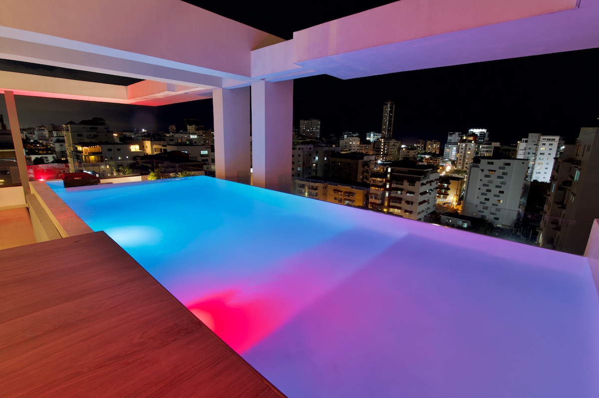 豪華なキングサイズベッドで目覚め、街のパノラマを眺めながらコーヒーを楽しみ、1日の終わりには屋上のインフィニティプールからサントドミンゴのスカイラインを眺めましょう。 このモダンなベラ・ビスタのコンドミニアムは、ホテル並みの快適さと、自宅のようなプライバシーを提供します。レストラン、カフェ、ダウンタウンセンターモールからわずか数歩の距離にあります。 利便性、快適さ、そしてスタイルを求める出張のお客様、カップル、またはご家族連れの方に最適です。