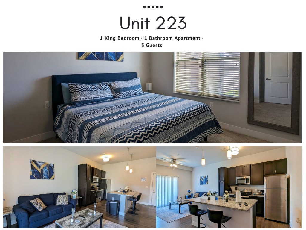 メリディアンは、12フィートの天井と明るい7フィートのスチールフレームの窓、設備の整ったキッチンを備えた、豪華で上品にデザインされた1BR/1BAロフトです。滞在を始めるには、淹れたてのラテと階下のミニマーケットの軽食をお楽しみください。午後はプールサイドで日光浴を楽しんだり、屋上のゲームテラスで友達とゲームを楽しんだりできます。夕暮れ時にドッグをグリルして、Uberでスタジアムまで行ってカードゲームを楽しむか、カーマインでステーキを食べて、有名なフォックスシアターでショーを楽しむこともできます。