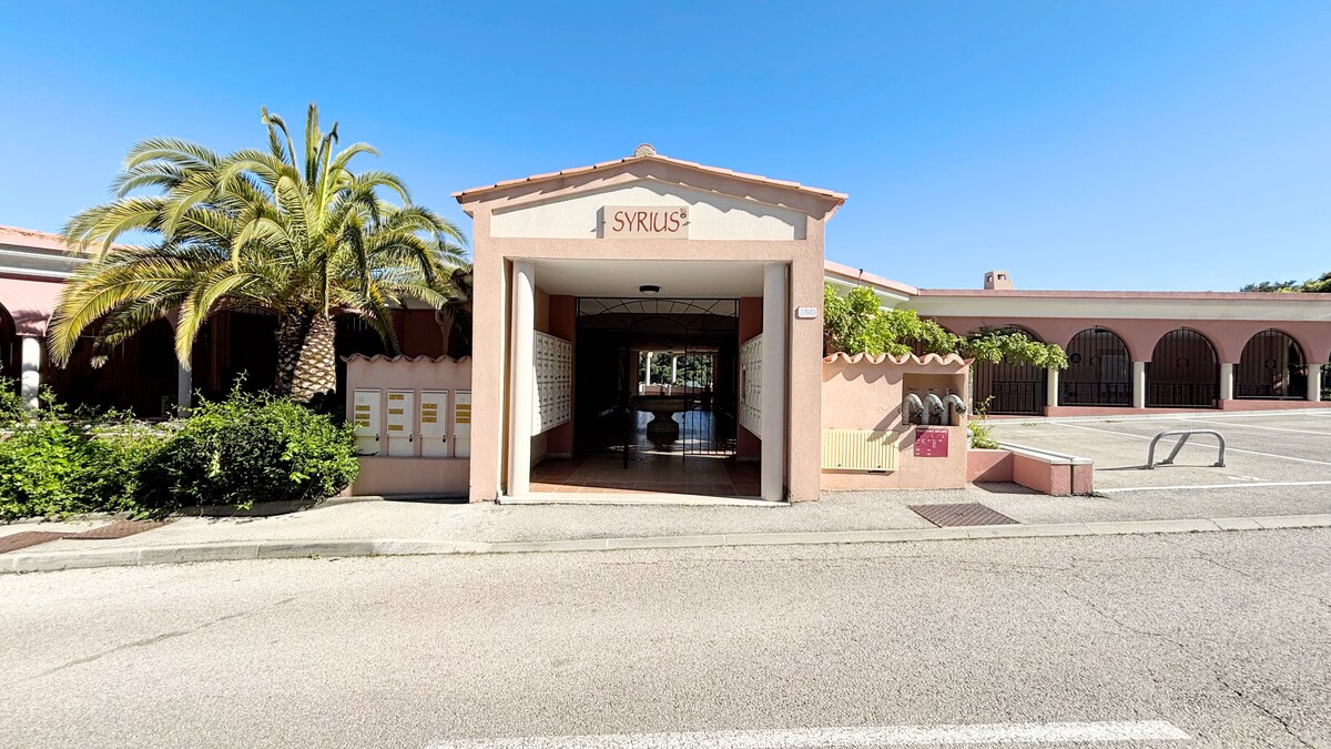 agréable 2 pièces équipée de 45 m 2 traversant nord sud dans une résidence sécurisée avec piscine terrain de pétanque et table de ping pong le logement peut accueillir 4 voyageurs 1 salon avec canapé convertible tv wifi 1 chambre avec lit double machine a laver 1 place de parking proche de tout commerces à pied. supermarché ,pharmacie boulangerie un arrêt de bus se situe en face de la résidence pour faciliter vos déplacements sur Cannes qui est à 6km et à 10 minutes des plages