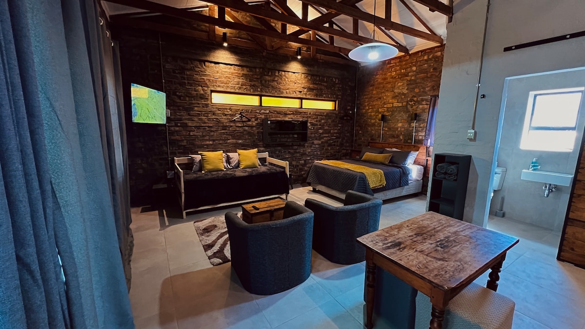 ダーバンビルワインランドの端にある、ベッド2台、バス2台のスタイリッシュな隠れ家で、安らぎ、快適さ、モダンな贅沢を体験してください。マスタースイートにはキングサイズベッド、ダーバンビルの丘を一望できる専用バルコニー、豪華な楕円形のバスタブを備えたデザイナーズバスルームがあり、朝のリラックスや贅沢なお風呂に最適です。階下の2つ目の寝室には、テーブルと椅子を備えた魅力的な中庭があり、居心地の良い朝食や夜のお酒を楽しむのに最適です。 屋内と屋外がスムーズにつながり、プールとバーベキューを楽しめます。