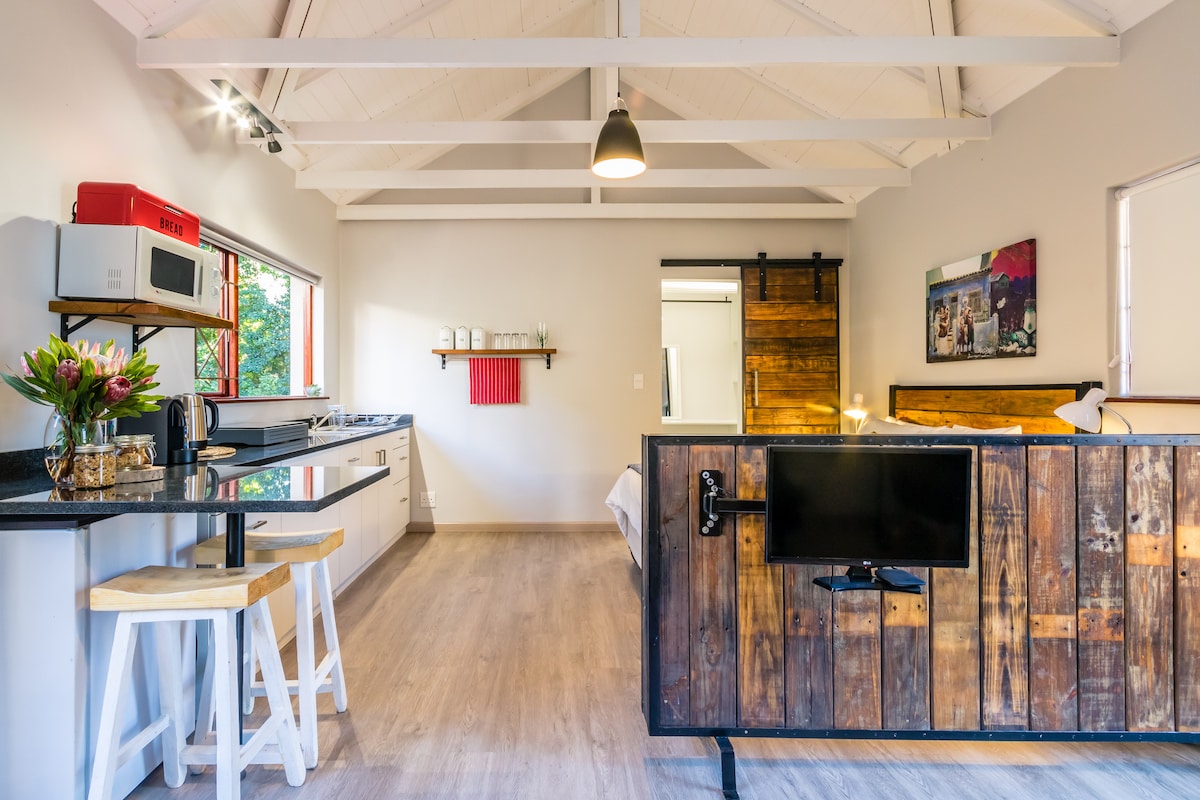 Our cozy and trendy self-catering loft guest suite is conveniently nestled in the heart of Boston, a mere stone’s throw from Tygervalley shopping mall and a host of upmarket restaurants and entertainment. It is about 2 km from Louis Leipoldt Mediclinic, Melomed and close to Tygerberg Hospital. Guests will also have easy access to the N1 and it’s 25 minutes’ drive to Cape Town International Airport, Waterfront and beautiful wine farms – a perfect base for a business or leisure trip to this area.