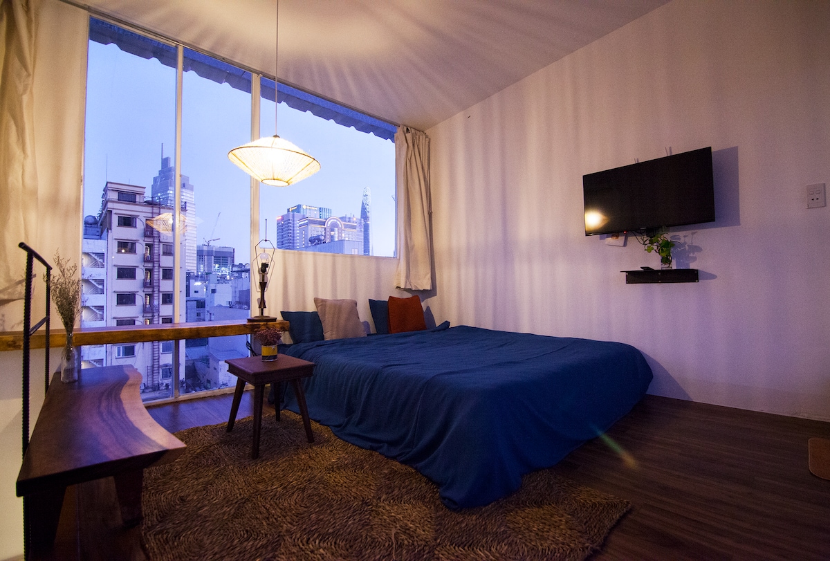 中心部にある私のワンルームマンションで快適な滞在をお楽しみいただけます。 多くの観光名所の近くにあり、ベンタン市場まで徒歩50m、ブイヴィエン&グイエンフエウォーキングストリートまで10分です。 夜の街の景色が素晴らしいです。 レストラン、カフェ、マッサージ、コンビニまで徒歩1 ~2分。 50インチのテレビで映画のような体験ができ、電子レンジ/コンロ付きのキッチン、設備の整ったバスルーム、古い建築と現代の建築が融合した活気ある街の広い景色を望むダイニングテーブルがあります。