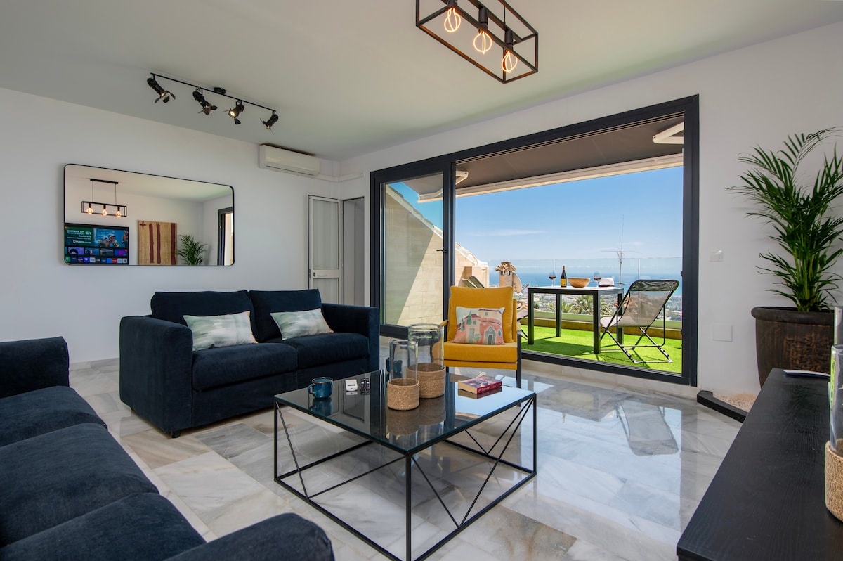 素敵な庭園にある、南西に面した海の景色を望む、魅力的な家の独立したプライベートな部分にあるモダンなアパートです。 玄関ドアから駐車場とプールまでわずか数メートルです! 美しいベナルマデナ・プエブロのお店やレストランから徒歩わずか400メートルですが、静かなヴィラ地区にあります。丘の上にあるので、村までの道は上り坂です。 近くにバス停とタクシー乗り場があり、高速道路へのアクセスも便利です。ビーチから車で2 km未満です。