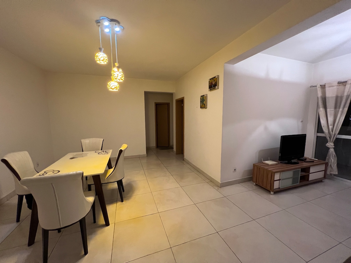 Spacious and bright apartment near KK 5000 and Kilamba. Quietly located, featuring a large living room and high ceilings. Supermarkets, a cinema, and a shopping mall are only a 5-minute drive away. Ideal for relaxing and a perfect base to explore Angola.