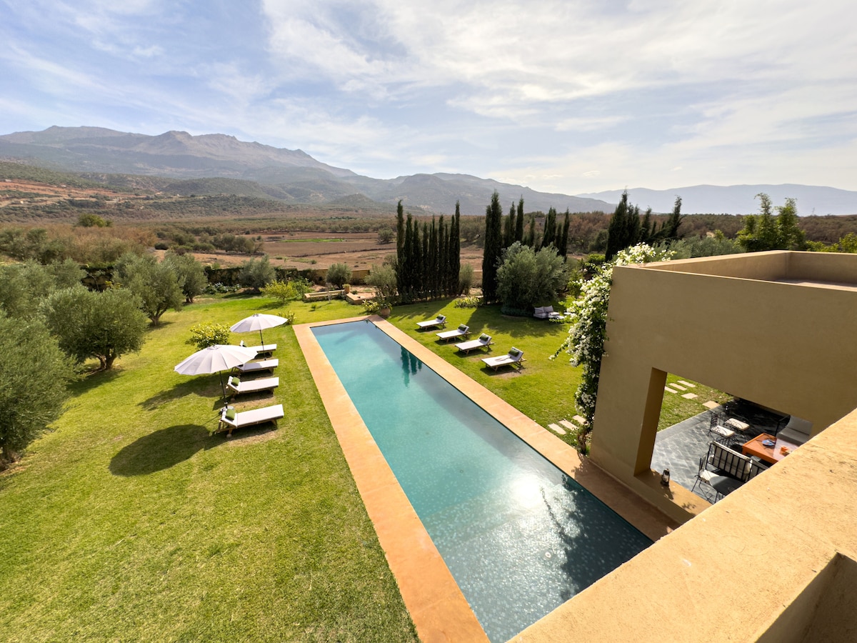 Escape to our luxury B&B, where timeless elegance meets modern comfort. This peaceful, purpose-built retreat is ideal for relaxation and adventure. Enjoy the 20 × 4-metre swimming pool with mountain views, shared lounge and dining areas, and an events room for socialising. Located just 15 minutes from Beni Mellal, with easy access to outdoor activities. Please note: this is a boutique guesthouse with shared spaces; each booking is for one private suite, located in its own separate building.