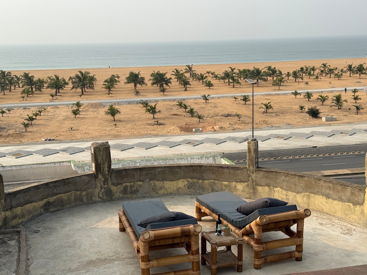 レビュー9件、5つ星中5つ星の平均評価コトヌー、フィジュロッセビーチの高級2階アパート