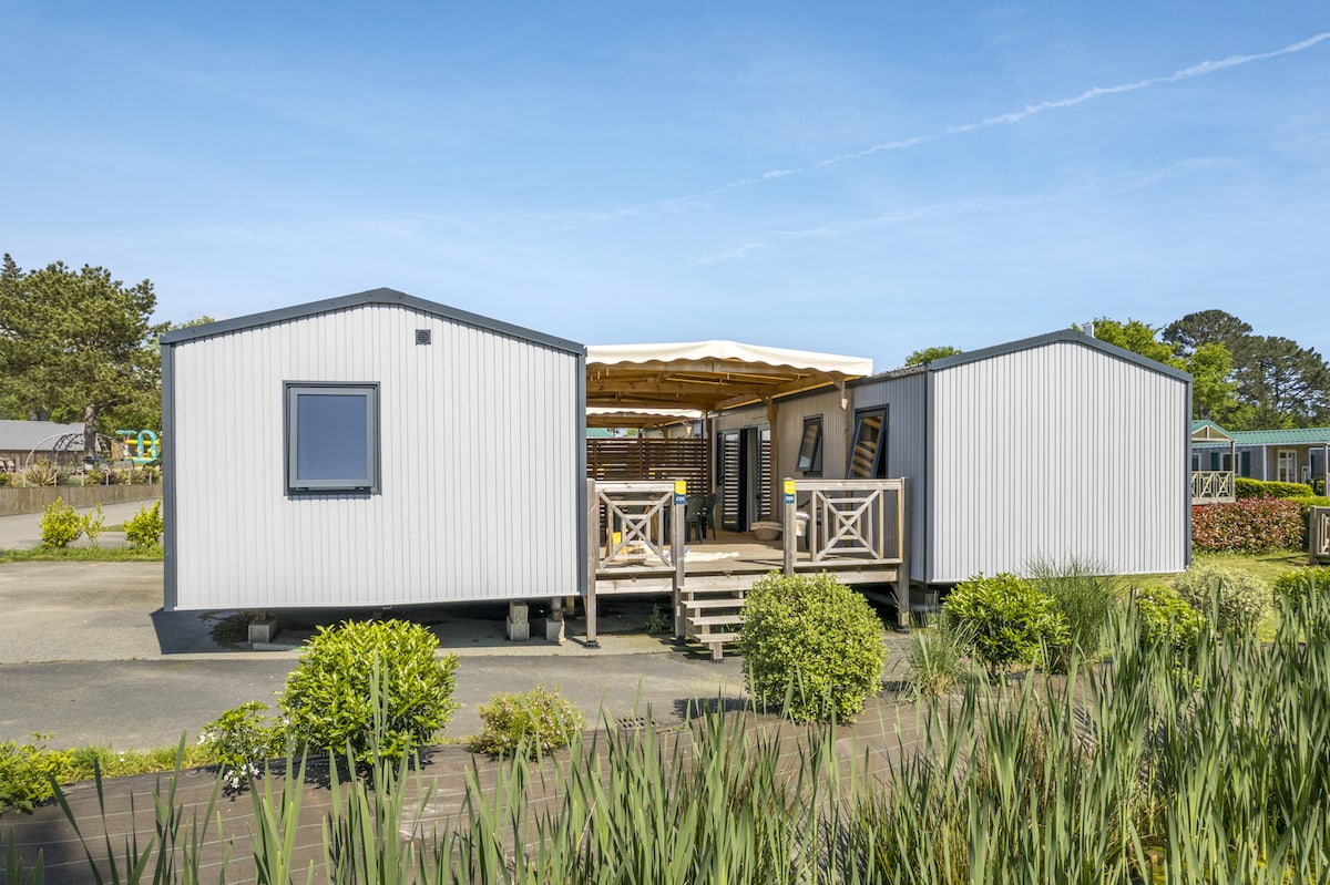 モバイルホーム 35m2、6名、3寝室、屋根付きテラス