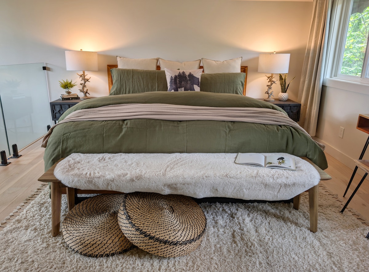 The Hilltop Hideaway was lovingly built in 2023 by newlywed hosts, Jake & Fran. With an emphasis on quality finishes & modern details, the space radiates a luxurious yet charming feel. With 2 bedrooms, 1.5 bathrooms & an open living space, this is the perfect place to relax & connect with travel partners! J&F placed a big emphasis on outdoor entertaining with a massive covered deck, the picnic table patio, & access to a cedar barrel sauna! Whether coming from close or far, you deserve it!
