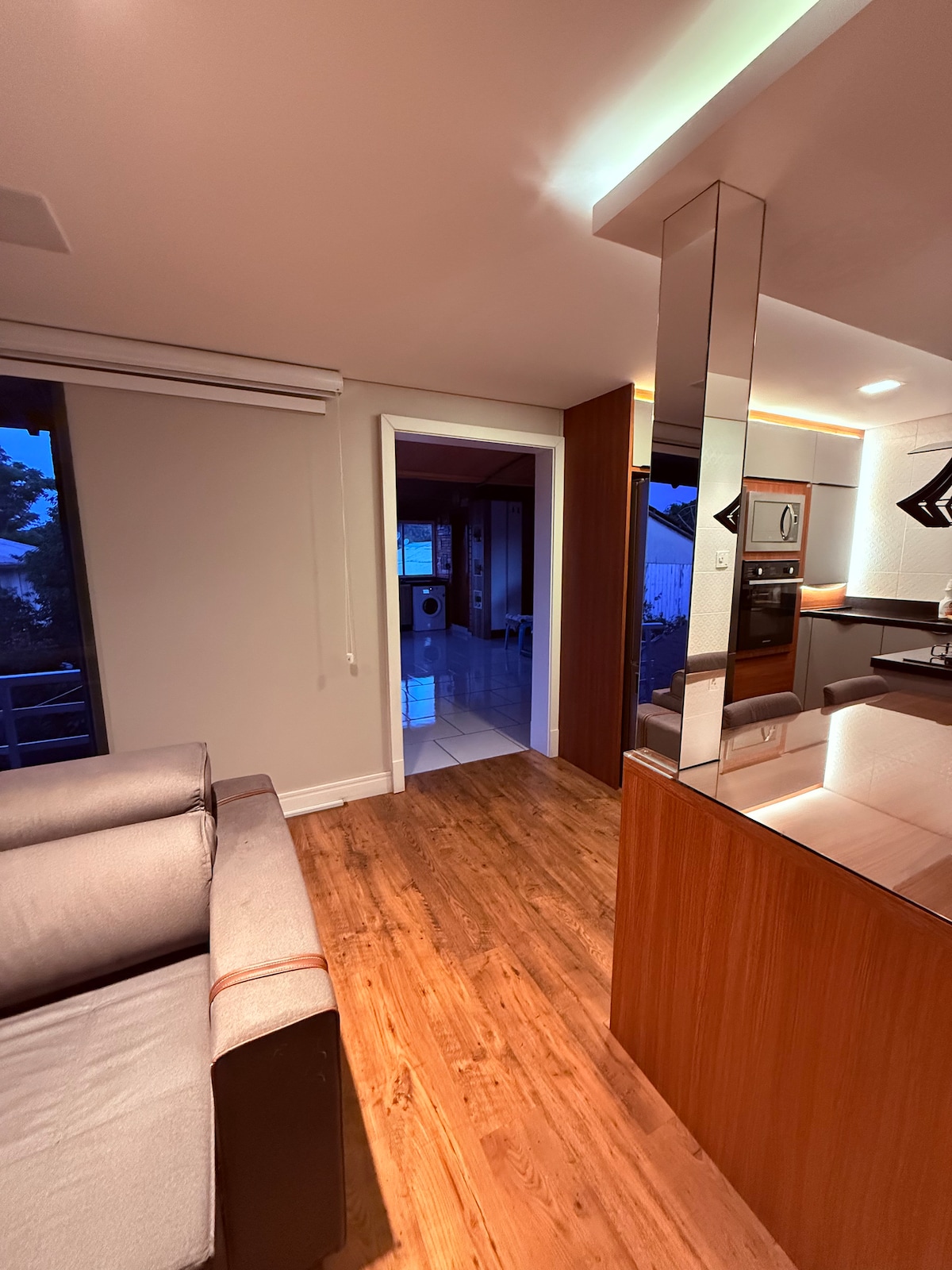 家は静かなエリアにあり、アクセスが簡単です。 ヴァレ・ドス・ヴィネドスから10分、ピパ・ポルティコ、マリア・フマサ、ガレト・ディ・パオロの近くにあります。 また、市場、薬局、店へのアクセスも簡単です。 カシアス・ド・スル空港から40分、ポルト・アレグレ空港から1時間30分です。 宿泊施設は住宅の上部にあり、自由にアクセスでき、美しい景色を望む素晴らしいバルコニーがあります。