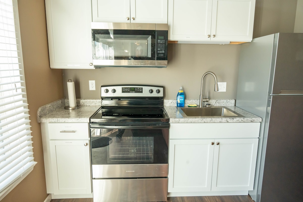 Spacious and newly remodeled, close to hospital and colleges, 1Gig WiFi, laundry in house, fully stocked kitchen, 55-in. Fire TV, and even a piano! Main-level half duplex. Cathedral ceilings make the space feel much larger than 1000 sq. feet! Within 1-2 miles of Northeast Regional Medical Center, AT Still University, Kraft foods, downtown Kirksville, and Truman State University. Playground, bike trail, and paved walking trail nearby.