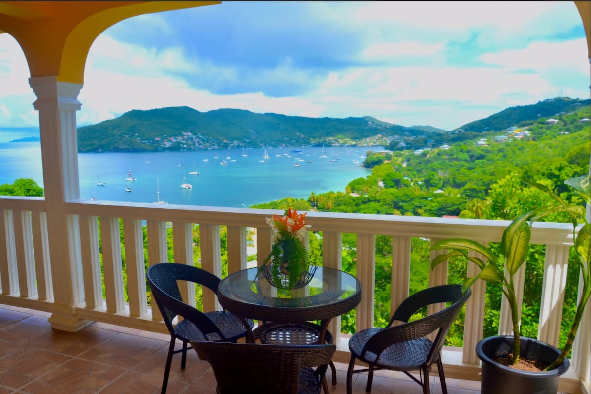 アイランドビューは、ポート・エリザベス港のパノラマビューを望む広々とした静かな家で🌅、家族やグループに最適です。町のお店、レストラン、ビーチ、フェリーから徒歩5分の場所にあり、快適にリラックスできます。 息をのむような景色、便利さ、くつろげる空間など、ベキアの魅力を存分にお楽しみください。長期滞在、ワーケーション、またはクラシックな島でのリトリートに最適です。