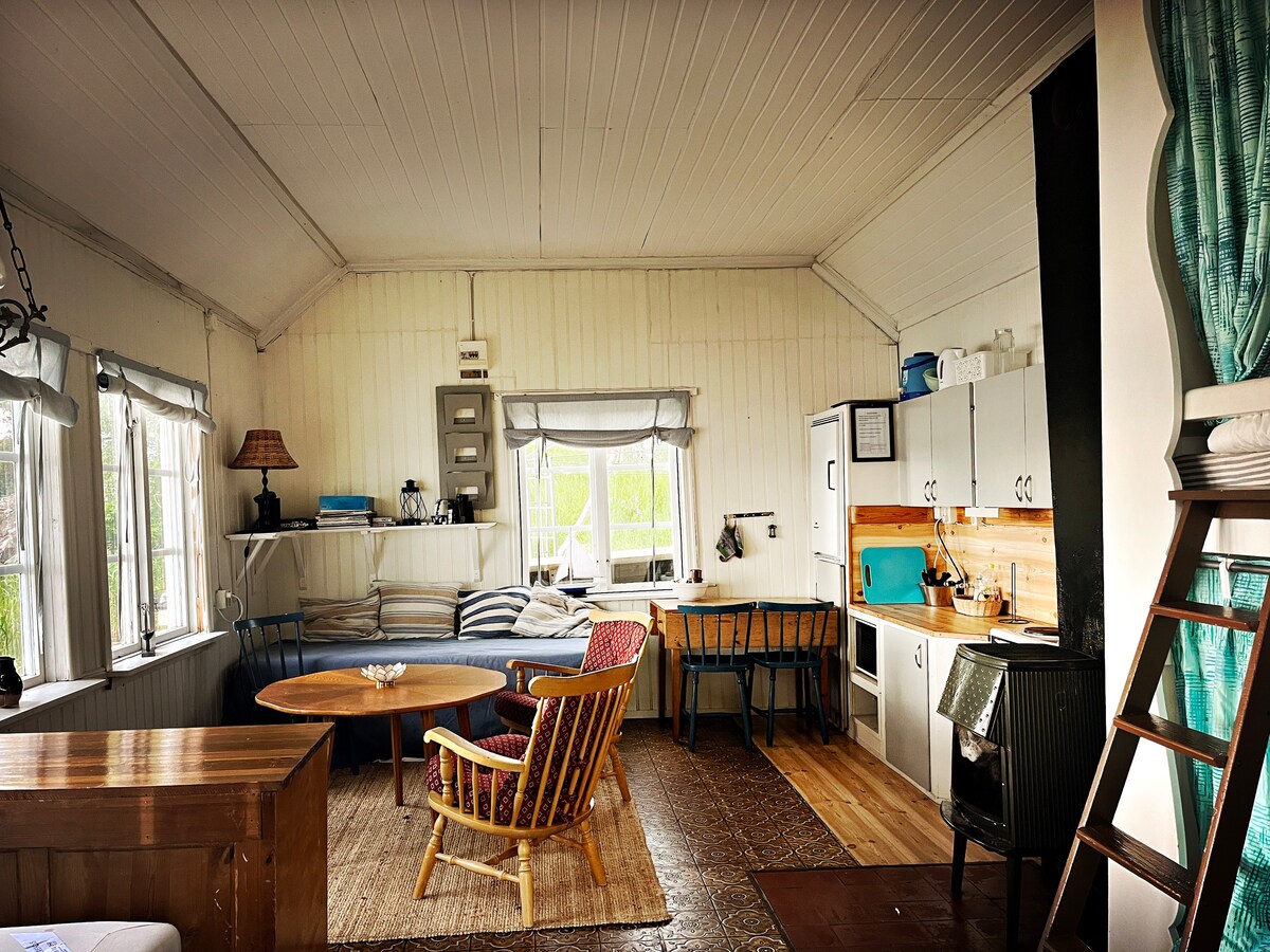 Charmig stuga på egen udde