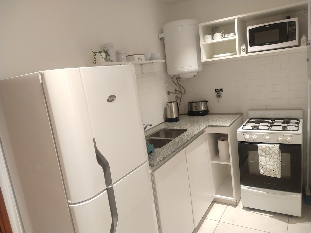 モダンで温かく、とても明るいこのワンルームをお楽しみください。フルキッチン(必要な器具はすべて揃っています)、温水、快適なベッド、Wi-Fi、スマートテレビ、タオル、石鹸、シャンプー、コーヒーなどの必需品が揃っています。休暇、リモートワーク、ラプラタ訪問に最適です。リラックスしたいという気持ちを持ってくるだけで十分です。ご自宅のようにおくつろぎください。